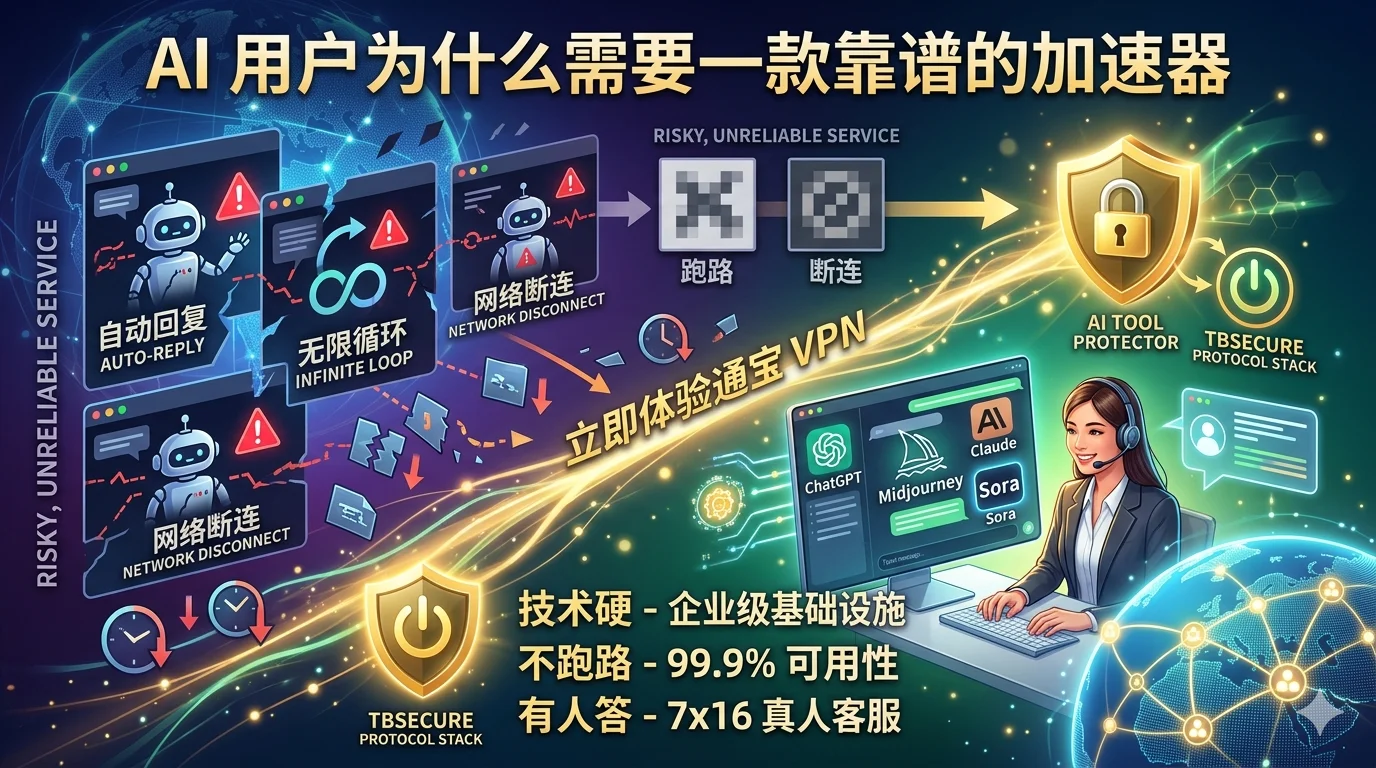 技术硬、不跑路、有人答——AI 用户选择通宝 VPN 的三大理由